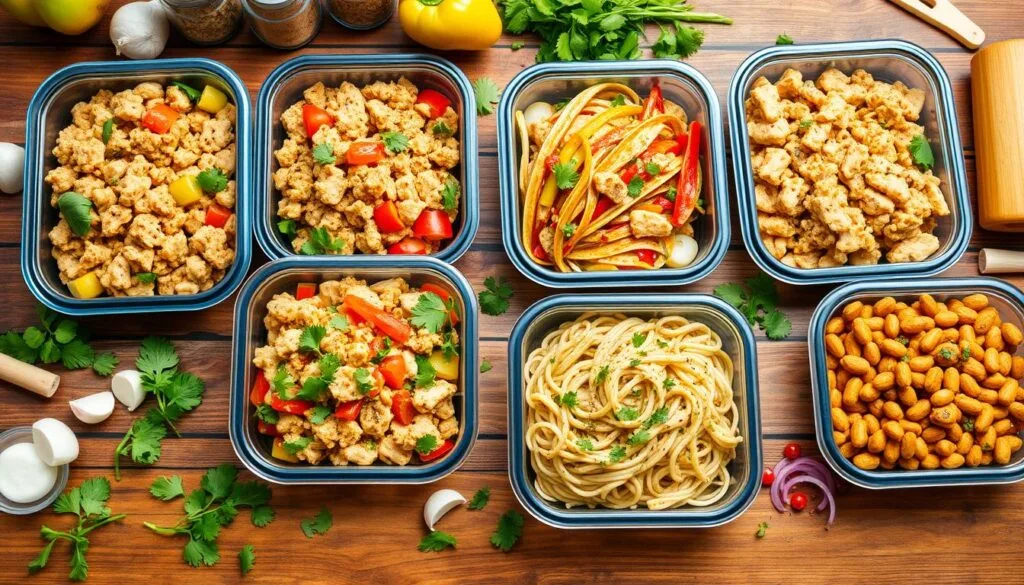 Batch cooking is efficient for meal prep. Cook a lot of ground chicken at once. Then, portion it out for different meals. This way, you can use it in tacos, salads, or pasta sauces all week.