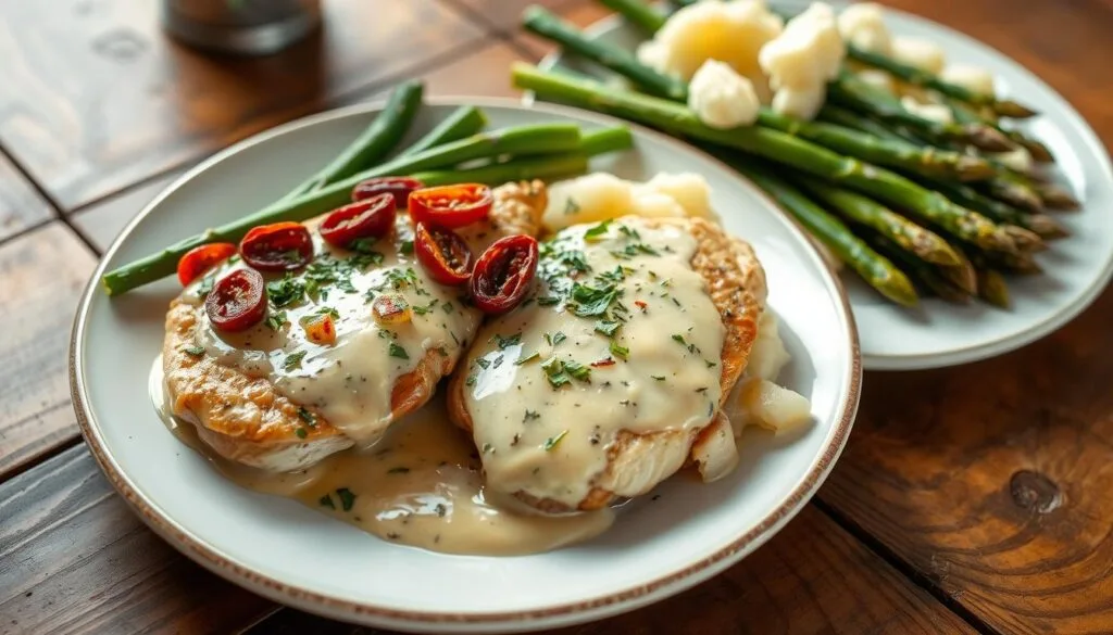 Choosing top-notch ingredients is key to a great taste. You can add bacon for a smoky taste or leave it out for a marry me chicken without bacon option. The marry me chicken with sundried tomatoes is a favorite for its sweet and tangy flavor.