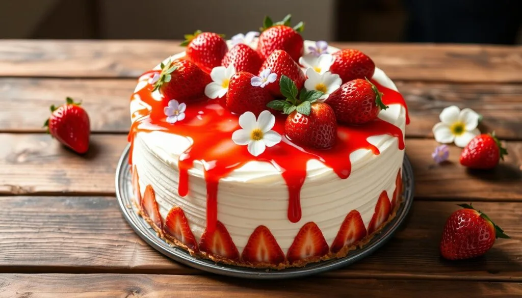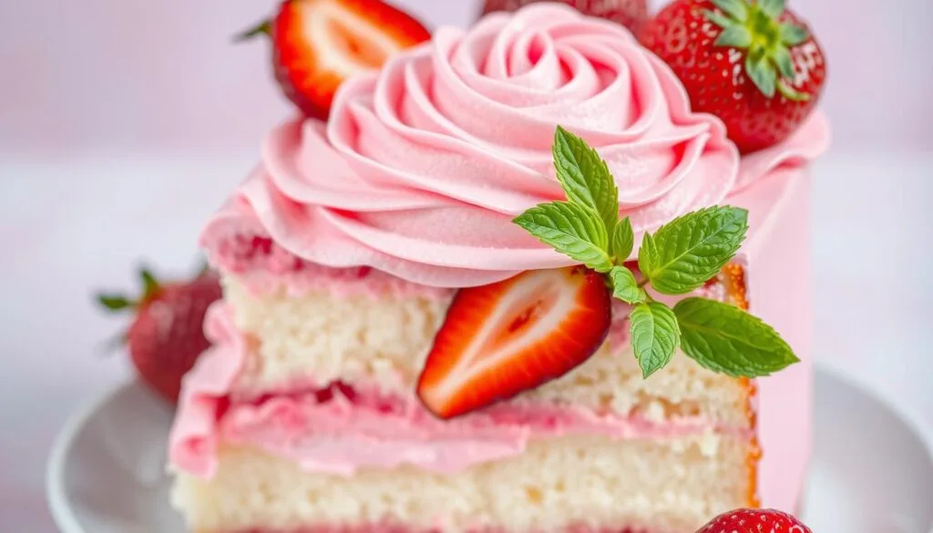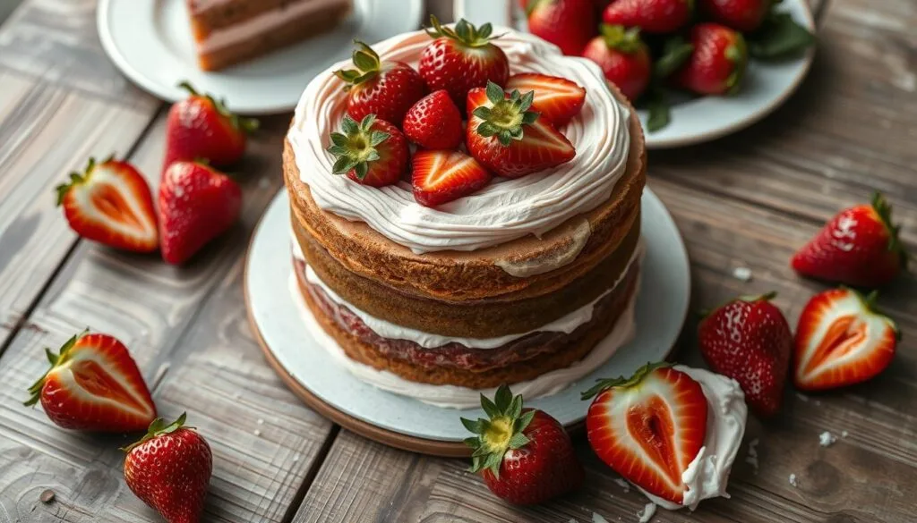 When making a strawberry cake, focus on making it moist and flavorful. Use buttermilk or sour cream to keep the cake moist. These ingredients make your cake fresh and perfect.